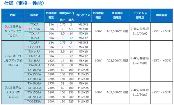 ・端子台にアルミニウム合金を採用することで従来品(TX形)より